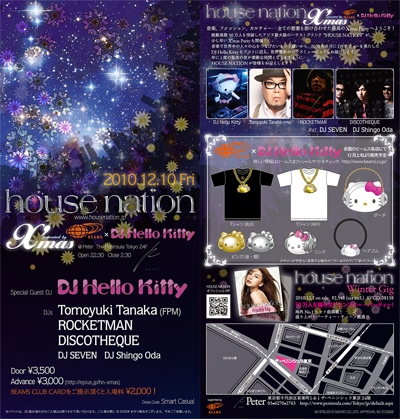 音楽で世界中の人々の心をつなげたいという思いから、2010年8月にDJデビューを果たしたDJ Hello Kittyをゲストに迎え、世界最新のハウスミュージックをお届けします。